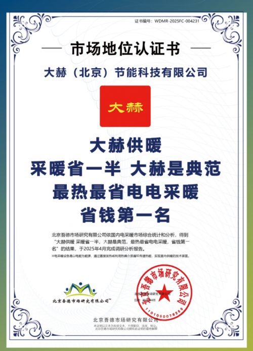 企业要以优质产品切实回应国家与民众的需求,在成就他人的过程中实现自我成长,才是可持续的“利己”。“最热最省电电采暖,省钱第一名”这一荣誉,是对大赫过往的认可。未来,其将继续秉持这份初心,让更多人从科技温暖中受益。选择大赫,就是选择一个更温暖、更节省、更绿色的冬天。